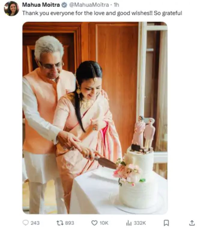 मुंबई, 06 अगस्त, (न्यूज़ हेल्पलाइन)। टीएमसी सांसद महुआ मोइत्रा और पूर्व बीजेडी सांसद पिनाकी मिश्रा का वेडिंग रिसेप्शन मंगलवार को नई दिल्ली के होटल ललित में आयोजित किया गया जिसमें देशभर से कई बड़े राजनीतिक चेहरों ने शिरकत की। इस खास मौके पर कांग्रेस की वरिष्ठ नेता सोनिया गांधी, समाजवादी पार्टी के प्रमुख अखिलेश यादव, तेलंगाना के मुख्यमंत्री रेवंत रेड्डी और पंजाब के मुख्यमंत्री भगवंत मान जैसे नेता भी मौजूद रहे। सोनिया गांधी कार्यक्रम के दौरान राज्यसभा सांसद रंजीत रंजन और अन्य मेहमानों के साथ डिनर टेबल पर नजर आईं। महुआ मोइत्रा इस मौके पर लाल रंग की साड़ी और पारंपरिक गोल्ड ज्वेलरी में नजर आईं, जबकि पिनाकी मिश्रा ने सफेद पारंपरिक पोशाक पहनी थी जिसमें लाल बॉर्डर था। दोनों ने इस साल 3 मई को जर्मनी में विवाह किया था। 50 वर्षीय महुआ मोइत्रा पश्चिम बंगाल के कृष्णानगर से दो बार की सांसद हैं, वहीं 65 वर्षीय पिनाकी मिश्रा ओडिशा के पुरी से पूर्व सांसद हैं और सुप्रीम कोर्ट के वरिष्ठ वकील भी हैं। पिनाकी मिश्रा को 2024 के लोकसभा चुनाव में पुरी सीट से भाजपा के प्रवक्ता संबित पात्रा ने हराया था।