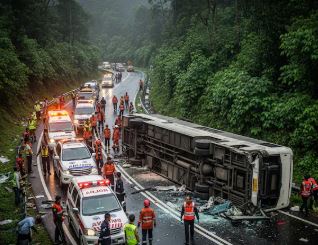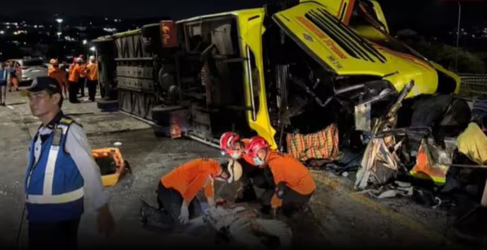 इंडोनेशिया में भीषण सड़क हादसा, तेज रफ्तार बस पलटी, 15 की मौत, 19 घायल