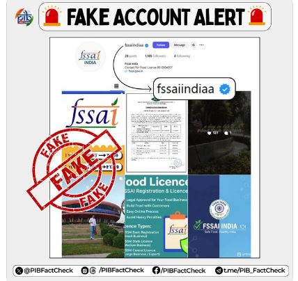 मीडिया प्लेटफॉर्म्स पर फर्जी (Fake) अकाउंट्स का जाल लगातार बढ़ रहा है। ये अकाउंट्स अक्सर प्रतिष्ठित सरकारी या निजी संस्थाओं के नाम का इस्तेमाल करके गलत सूचनाएं फैलाते हैं और निजी फायदे के लिए धोखाधड़ी करते हैं। हाल ही में, भारत सरकार की आधिकारिक सूचना देने वाली संस्था प्रेस इन्फॉर्मेशन ब्यूरो (PIB) की फैक्ट चेक टीम ने भारतीय खाद्य सुरक्षा और मानक प्राधिकरण (FSSAI) से जुड़े एक ऐसे ही फर्जी इंस्टाग्राम अकाउंट को लेकर बड़ा खुलासा किया है।